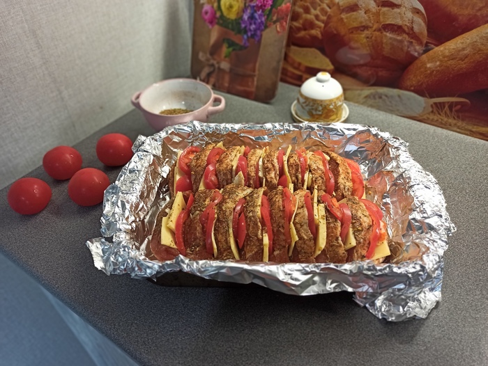 Не стала их шницелями обзывать - всё таки не телятина) Начать готовить лучше с салата, чтоб настоялся, пока заняты мясом.