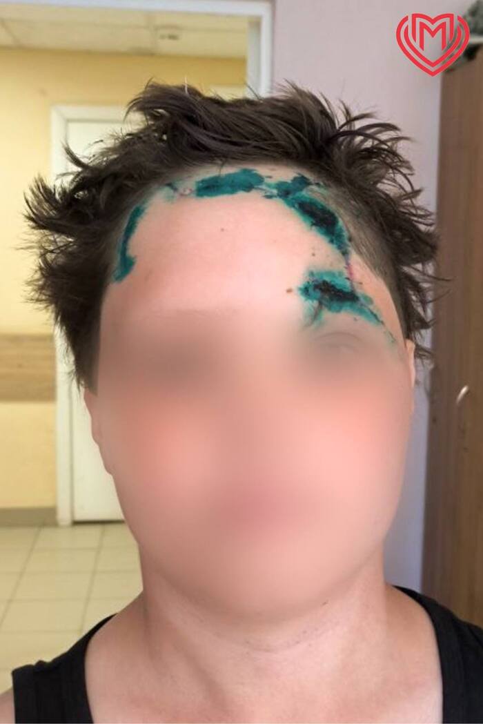 Хирурги помогли мальчику с обширной раной лба от укуса собаки