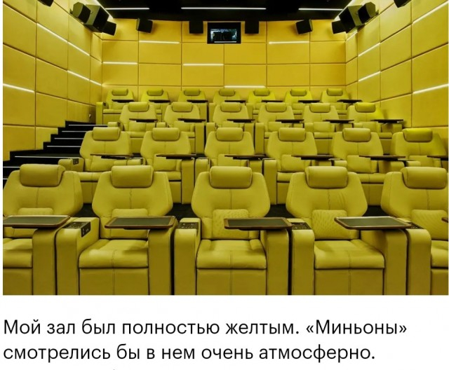 Впрочем, за меньшие деньги я мог бы получить то же качество в кинотеатре «Художественный». Только за гораздо меньшую цену. В «Москве» важно скорее уединение, которое ты не найдешь в кинозалах популярных киносетей. И даже у себя дома, где периодически мешают звуки с улицы или шумные соседи.