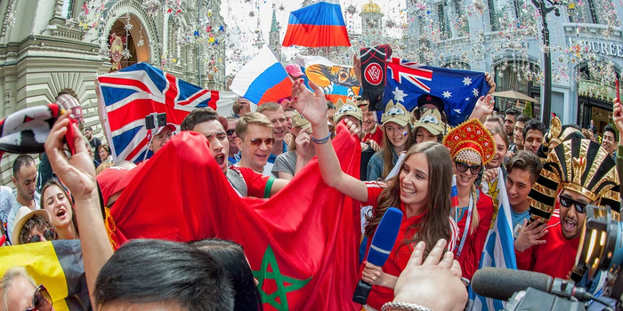 С 14 июня по 15 июля в России проходил Чемпионат Мира по футболу. Главным городом спортивного события, конечно, стала Москва. Здесь же состоялся финальный матч. Весь город окунулся в атмосферу футбола. Им начали интересоваться даже те, кто игру никогда не смотрел. На улицах можно было увидеть огромное количество иностранных болельщиков. Центром притяжения в столице стала Никольская улица. Именно здесь проходили самые масштабные и шумные гуляния.