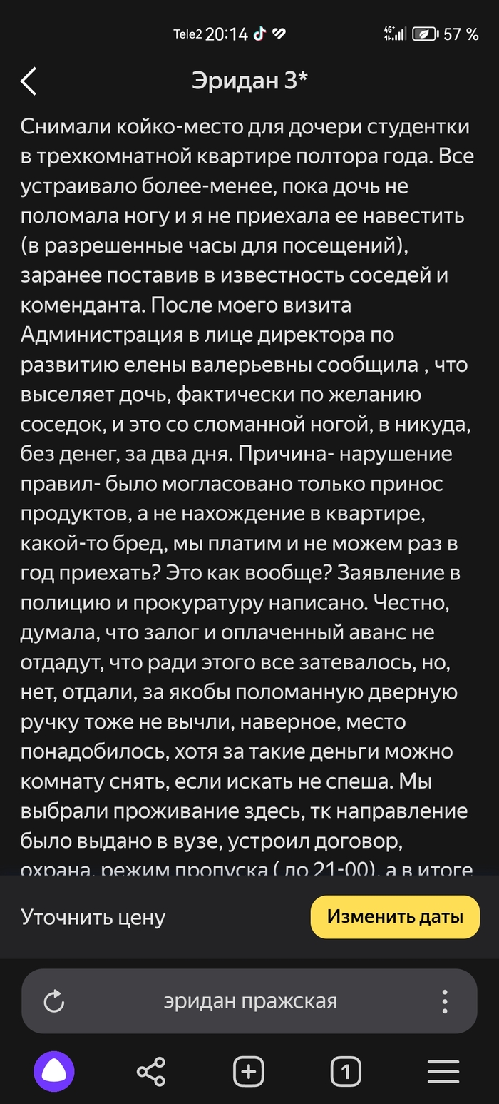 уютные комнаты, за приемлемую цену.. Сервисный сбор 3000.. Но вот сервис управляющей Виктории. Выселять без причины с целью заселения нового человека, ради сервисного сбора, скрин как общается управляющая со студентами. Прикладываю, отзыв ещё одной пострадавшей, прикладываю. В их контактах лишь один номер. Меня выселили поздно вечером зимой, в никуда, вышвырнули как собаку. А за что?) до сих пор задаюсь вопросом этим. Прошу общественный резонанс. Чтобы хоть как-то выйти на руководство и разобраться. Хочу, чтобы все знали, как зверски там могут поступить с вашим ребёнком.