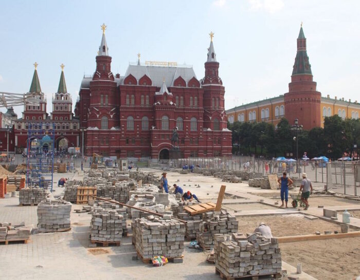 Впрочем, это не сильно помогло, ремонтировать брусчатку по-прежнему приходится перед каждым парадом...