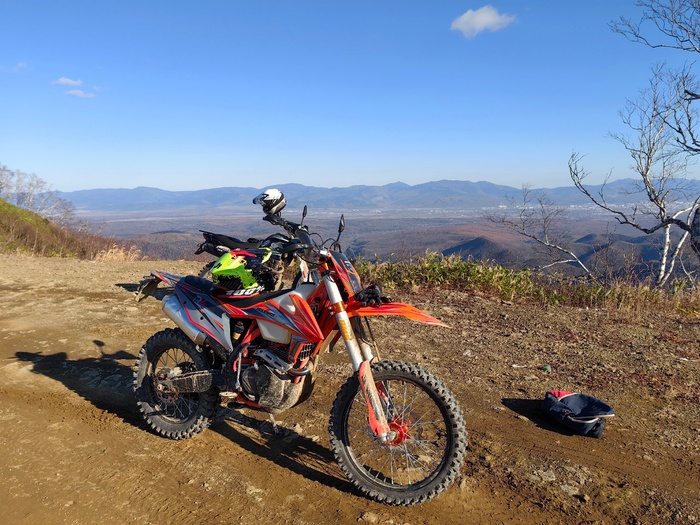 На бездорожье кататься было не с кем, выезжал буквально пару раз. Но сразу же пришло осознание того, что я полный ноль на мотоцикле.. В первый же выезд в лес упал, разбил зеркало. В другой раз с товарищем поехали покорять горы, в сырую погоду, упал порвал связку на пальце.