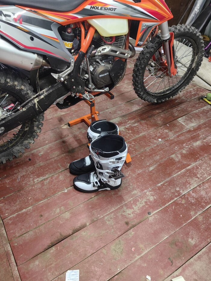 Пришел мне мотоцикл в середине октября 2023, обкатать я его просто не успел. Зато успел на нем упасть на льду, хорошо уже был экип и ботинки, так как мотоцикл упал мне на ногу.