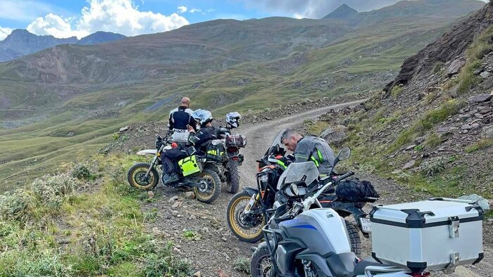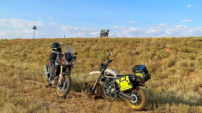 Главным испытанием всей экспедиции лично для меня стал грунтовый участок дороги в урочище Джылы Су, где очень быстро выяснилось, что эндураст из меня - как из говна пули. Точнее, ещё хуже. Тем не менее, мне каким-то невероятным образом удалось преодолеть эти 60-70 км, не разложившись и не переломав себе руки и ноги. Удивительно. Синьёр Алихандро оказался, наоборот, таким крутым оффроудным райдером, что превзошёл даже великих журналистов. Достойно уважения.