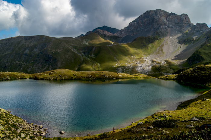 12. Кулуар. Это вертикальный овраг в горах. Образуется по тому же принципу, а по-польски даже называется одним словом. По кулуарам не ходят, потому что всё, что сверху летит, обычно влетает в ближайший кулуар и сносит всё содержимое. Исключения бывают, но о них потом. На фотке выше кулуар -- справа от цирка, со снежником. Много мелких кулуарчиков, сливающихся в один, образуют страшную хрень под названием денудационная воронка. Её названием можно по ночам детей пугать.