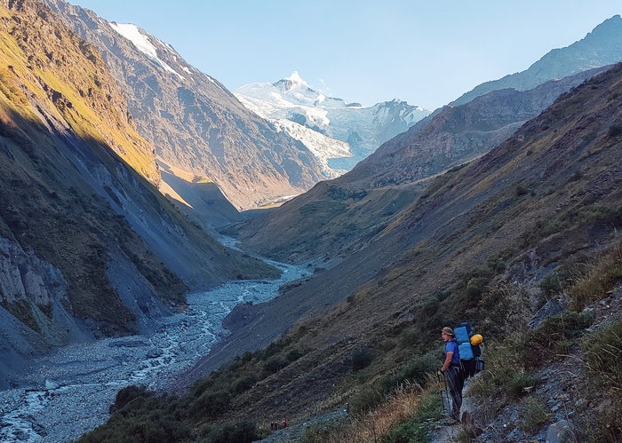 В зависимости от времени года и состояния маршрута могут понадобиться кошки и системы, но нам повезло, кстати ходили мы с 11 по 17 сентября. Участок камнеопасный, так что каски нужны обязательно!