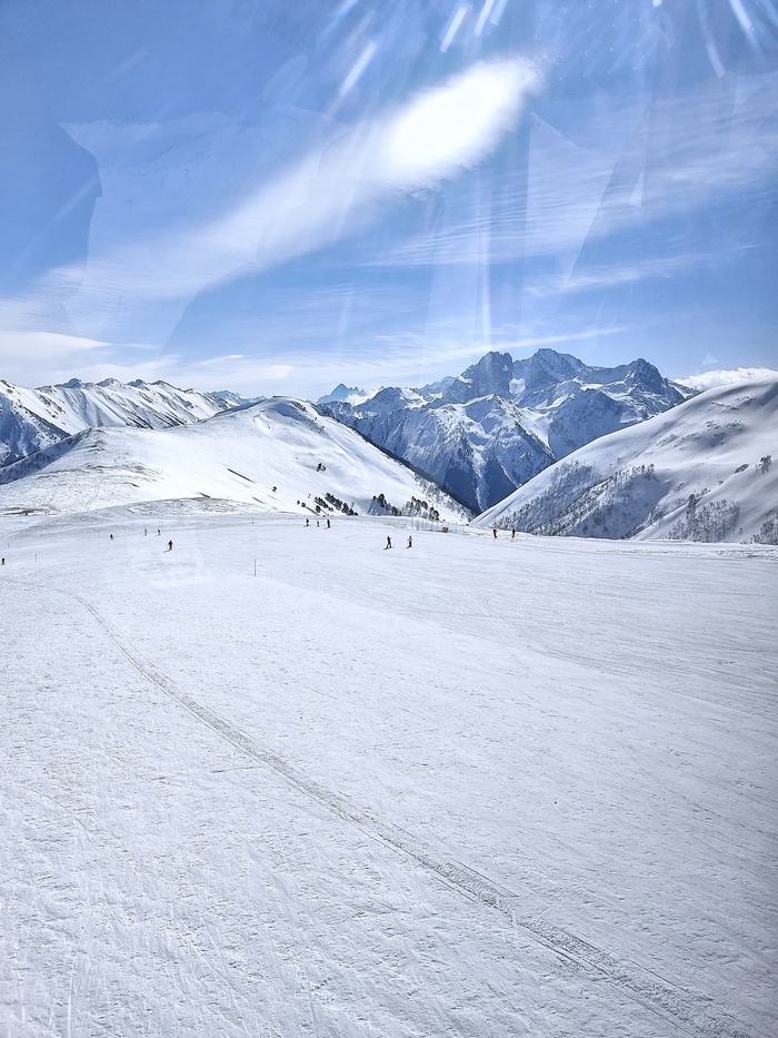 Спуск планировался сразу до Кармадонских ванн, основная опасность это появившийся снег на подъеме от Креста до ОЖД, и Контрфорс.