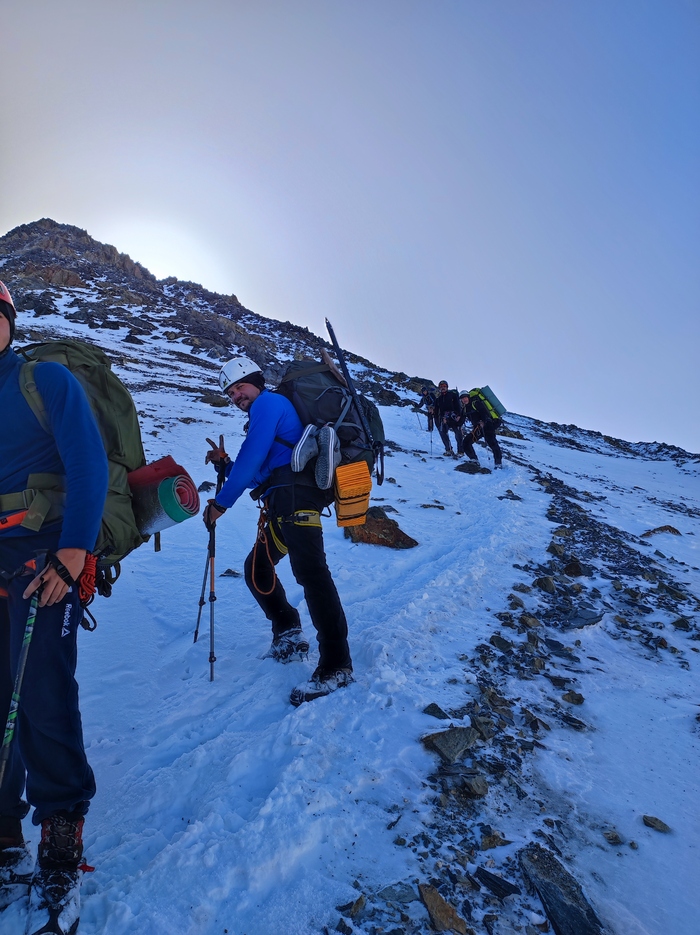 В прошлом году сама специфика маршрута была иная, было больше снега, идти было тяжелее, надо было тропить. В этом году был фирн, иными словами лёд, по нему идти легче но менее безопасно, поэтому в связке идти обязательно.