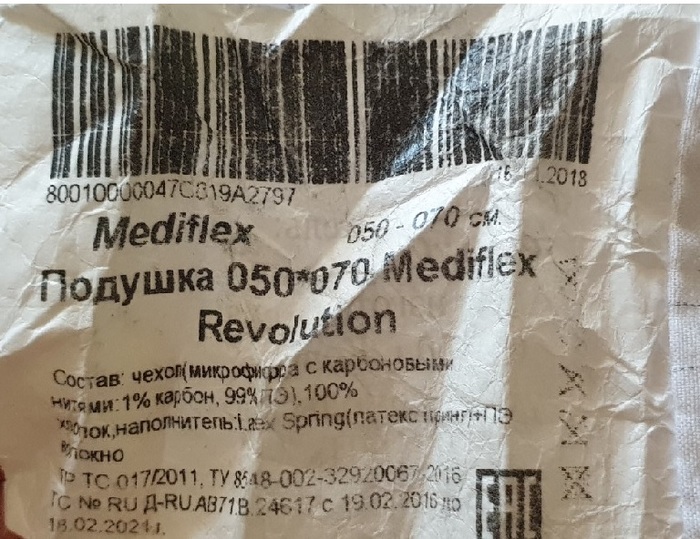 Приобрел чудо творение и вручил жене. Спустя пол года жена решила что размер чутка не подходит, шее немного не комфортно. Вариант с обменом спустя столько времени уже не прокатит. В связи с этим решила распороть и вытащить чутка нано-пружинок из подушки что бы объем по уменьшить. И какое было удивление, что заместо нано-пружинок там небрежно нарезанные куски поролона приправленные синтепоном.