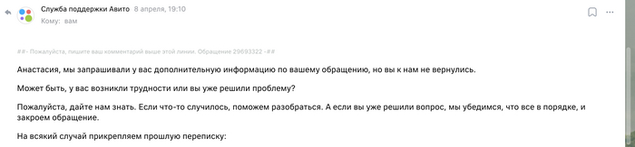 Собственно, на этом моменте я подзабила и уже ясно, что ждать адекватного ответа не стоит, но тут авито меня потеряли, надо же. ОНИ ПОМОГУТ РАЗОБРАТЬСЯ В МОИХ ТРУДНОСТЯХ.