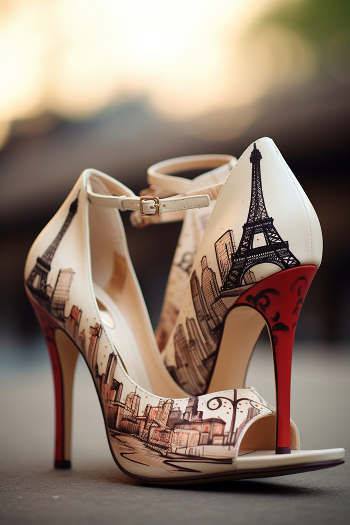 Промпт: "women's shoes with an Eiffel Tower heel". Midjourney, v 5