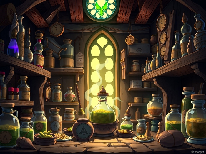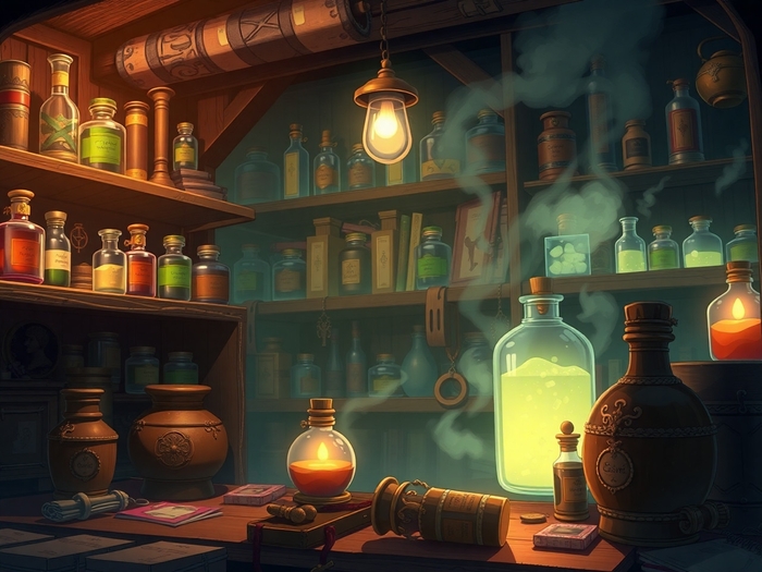 Я огляделся вокруг. На полках стояли склянки с зельями, на столах лежали различные инструменты. Все было аккуратно разложено, но чувствовалось, что здесь давно не было хозяина.
