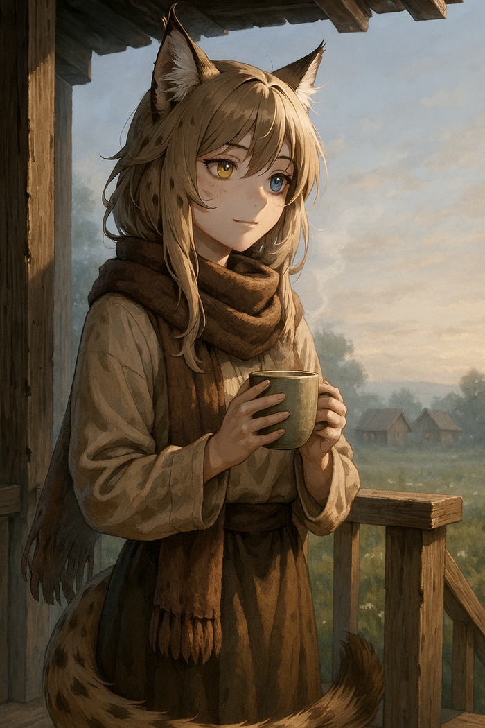 Деревенский домик тёти Эльки утопал в мягком свете заходящего солнца. На деревянной веранде висели связки трав — мята, чабрец, лаванда — благоухая на весь двор. Где-то в углу лениво урчал кот, а петух с важным видом прохаживался мимо грядок.