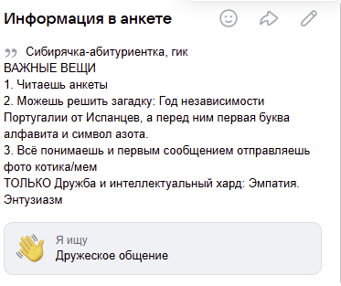 Уважаемые пикабушники - вопрос жизни и смерти - помогите выбрать лучшее описание анкеты для знакомств?