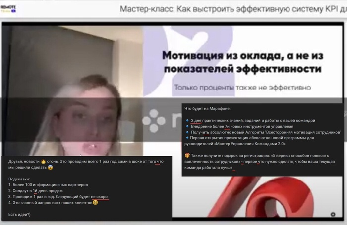 Тем не менее, мы решили отправиться на мастер-класс от Стародубцевой и посмотреть, какую информацию можно почерпнуть из этого увлекательного мероприятия. Выбрали обычного, живого и ни в чем не виновного сотрудника, который далек от всех этих систем мотивации и KPI, и отправили на мероприятие «добровольцем».