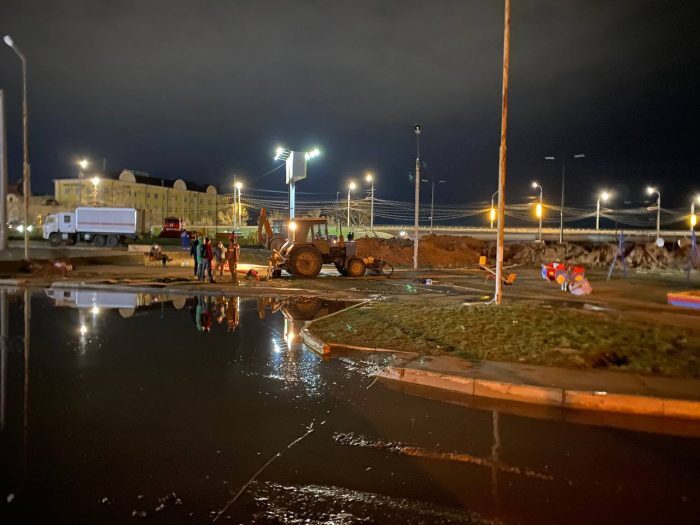 Рядом — откачивали воду из канализации. Она переполнена и вода собирается в лужи, которые текут в районы жилых кварталов.