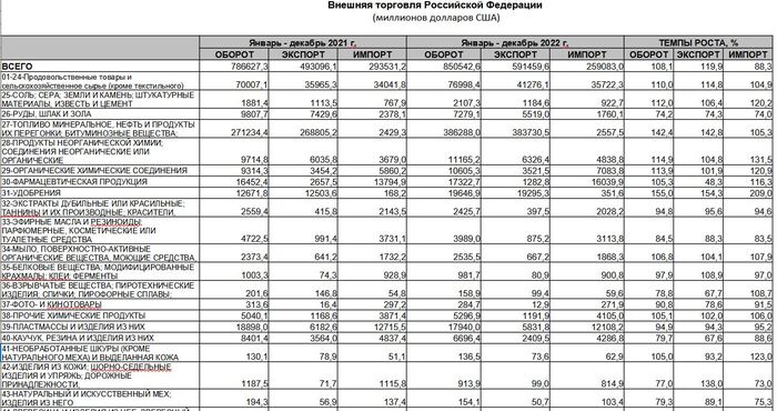 ФТС представила данные по группам товаров. Главное — экспорт просел везде, кроме сельского хозяйства. Последнее не сильно влияет на общую картину, потому что он занимает только третье место по объему экспорта. По импорту все идет в рост, кроме древесины. Ранее её продавали из западной части страны в Европу, а теперь этот переработанный лес больше идет на внутренний рынок.