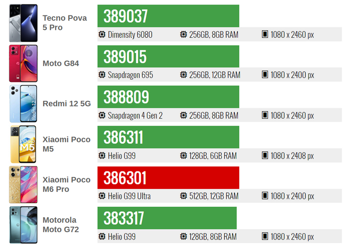 Poco M6 Pro основан на базе чипсете MediaTek Helio G99. Однако, Xiaomi использует специальный вариант этого чипсета, который обозначен как Helio G99-Ultra. Глядя на его спецификации и производительность мы совершенно не понимаем, чем он отличается от других G99. Вполне возможно, что это очередной маркетинговый трюк от Xiaomi, чтобы телефон выглядел еще круче! "Посмотрите как, у меня в телефоне G99-Ultra, а не обычный, как у вас".