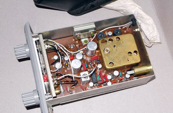А вот теперь вскроем для сравнения тот самый «Урал-292», так же выкинув из него лентопротяжный механизм. Электроника «Урала» выглядит как какой-то экспериментальный научный прибор из арсенала «Дока» Эммета Брауна.