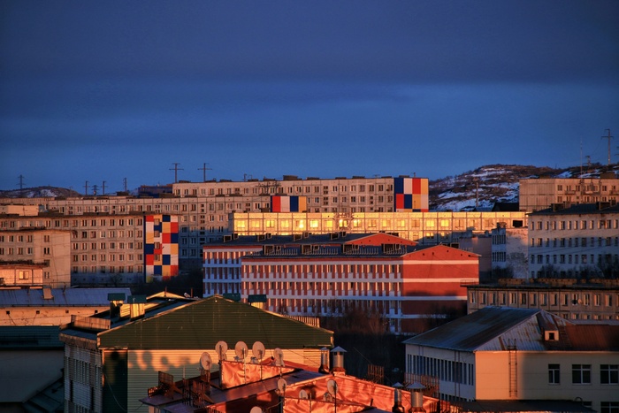 23 EvJess Искусство фотографии Спит "золотой" город... 1 год назад А в Заполярье полярный день Показать полностью 2 [моё] Закат Рассвет Рассветы и закаты Заполярье Мурманская область Май Полярный день Город Пейзаж Фотография 1 Ещё 0