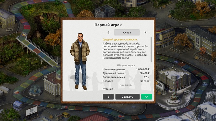 Симулятор жизни позволяет вам немного "помечтать". Вот как и тут, так как вам предлагается пройти путь от простого работяги до владельца миллионов рублей. Хотя, тут уже как "кубик ляжет". Начнём пожалуй с того, что нужно "создать игру"