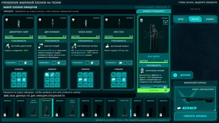 Примечание: ещё в игре присутствуют «офицеры-специалисты», которых можно найти в своих странствиях, заполучив их ДНК для последующего клонирования.