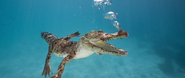 К водному образу жизни приспособлена и дыхательная система. Носоглотка отделена от рта костным небом – это позволяет ящеру держать пасть открытой под водой без страха захлебнуться. А воду в легкие не пускает небная завеска. Ноздри крокодила от заливания водой оберегают кожные клапаны, которые открываются только на воздухе. Таким же образом защищены и ушные отверстия.