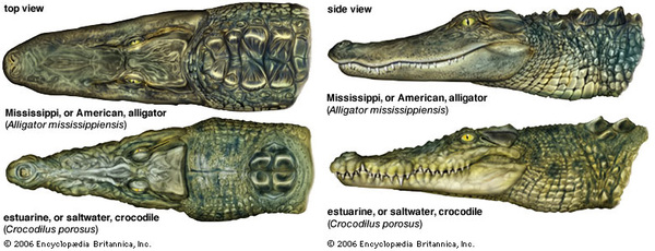 В предыдущем посте я писал про отличия аллигаторов от крокодилов. Кроме уже упомянутой формы морды и отсутствия торчащего наружу зуба, аллигаторы отличаются чуть меньшим мозгом, менее быстрым обменом веществ и меньшей проворностью.