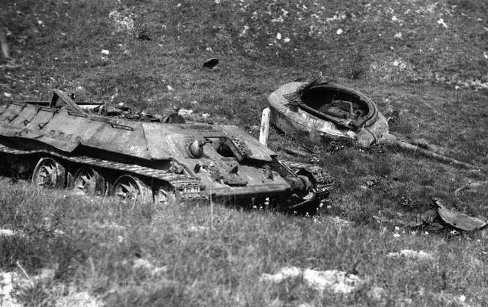 Многотонная машина в прямом смысле этого слова чуть ли не подпрыгнула над землей. Взрыв был такой силы, что башню танка оторвало от корпуса. В дыму исчезло и тело танкиста.