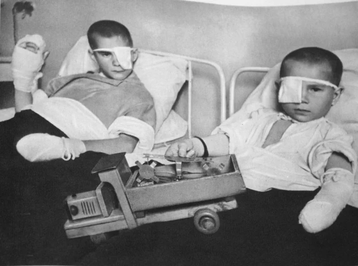 Еще одно фото из блокадного Ленинграда и тоже раненные дети.