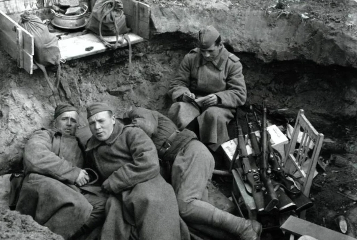 Часто бойцы строили укрепленные блиндажи и землянки. Это был тяжелейший физический труд, бревна часто укладывали в три наката, но убежище было теплым и относительно безопасным.