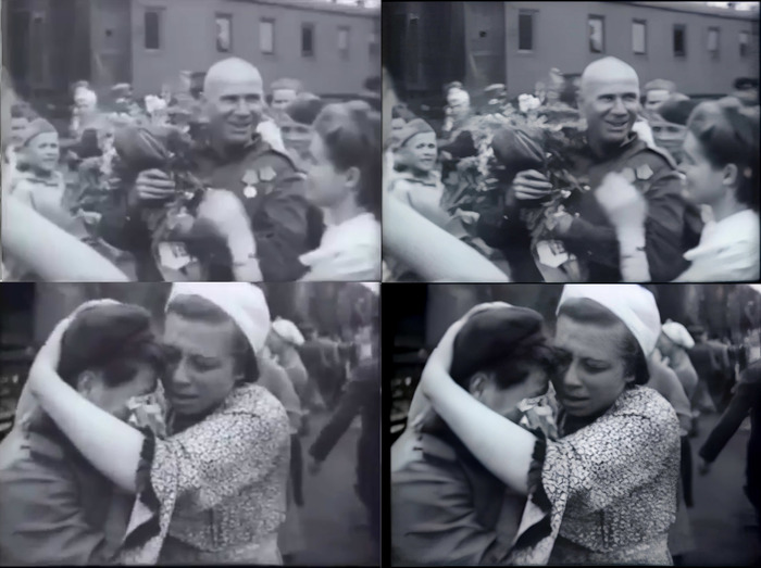 На этот раз я решил попытать счастья с роликами с качеством много хуже, нежели в моём предыдущем посте. Это хроника прибытия первого поезда Победы в Москву, на Белорусский вокзал.