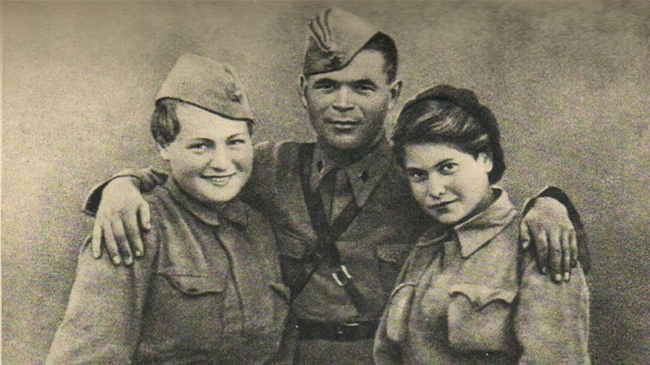 Гуля Королёва (слева) с фронтовыми товарищами, 1942 год