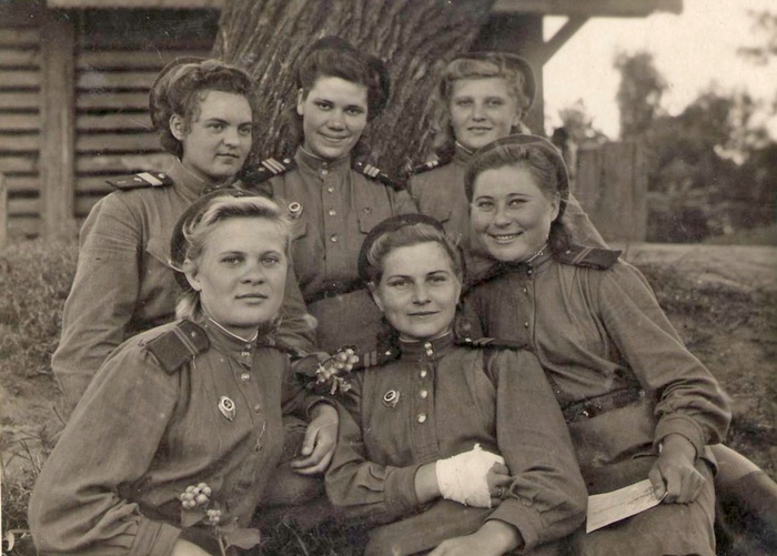 Телеграфистки 1-го отдельного Севастопольского Краснознаменного полка связи. 1944 - 1945 г.г.Помкомвзвода Л. А. Пудовкина (Нетупская), сослуживица:«Новобранцев привезли в Сокольники, разместили в обычной московской школе. За два месяца девушкам предстояло освоить профессии телеграфисток и радисток.Тех, кто попал в роту СТ-35, обучали работе на советских телетайпах. Эти аппараты могли передавать сообщения на 300 километров. Мы оказались в роте бодо.Я это слово тогда впервые услышала. Ничего не знала об аппарате "Бодо". У него всего пять клавиш, но он очень сложный в обслуживании. Для зашифровки сообщений использовались специальные кодированные карты. Зато дальность связи достигала 800 километров.... После прорыва блокады к нам прибыли девчушки из Ленинграда. Хорошо помню Наташу Рогалеву и Женю Алексееву. Кожа да кости. Я смотрела на них и плакала. Родители Наташи работали в Ленинградском театре оперетты, погибли в блокаду от голода».Фотография из архива Вячеслава Каморова-Богдановского.