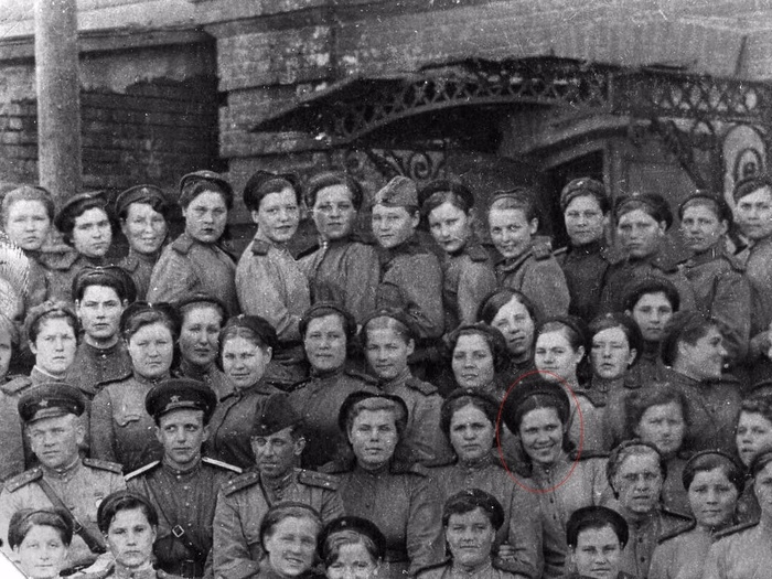 Алевтина Яковлевна Колчанова с сослуживцами.  1945 годКолчанова Алевтина Яковлевна – первая слева в верхнем ряду. Фотография из архива Вячеслава Каморова-Богдановского.