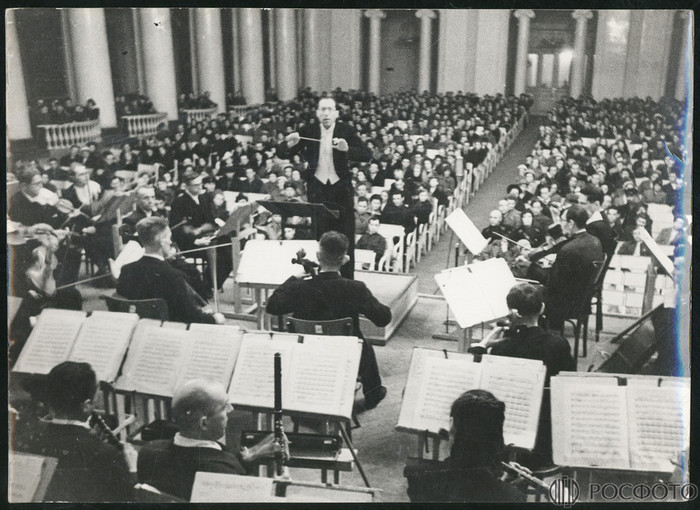 Исполнение Седьмой Ленинградской симфонии Дмитрия Шостаковича в Большом зале Ленинградской филармонии. 1942 г.