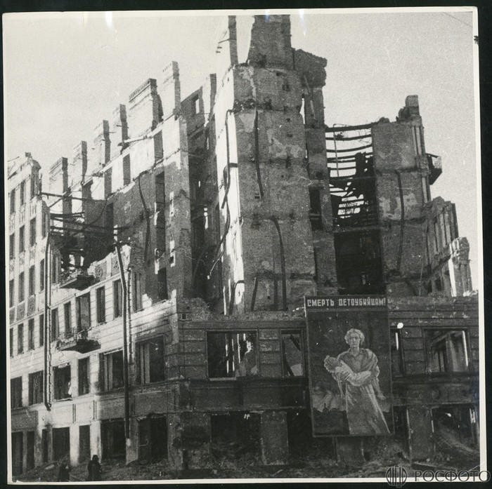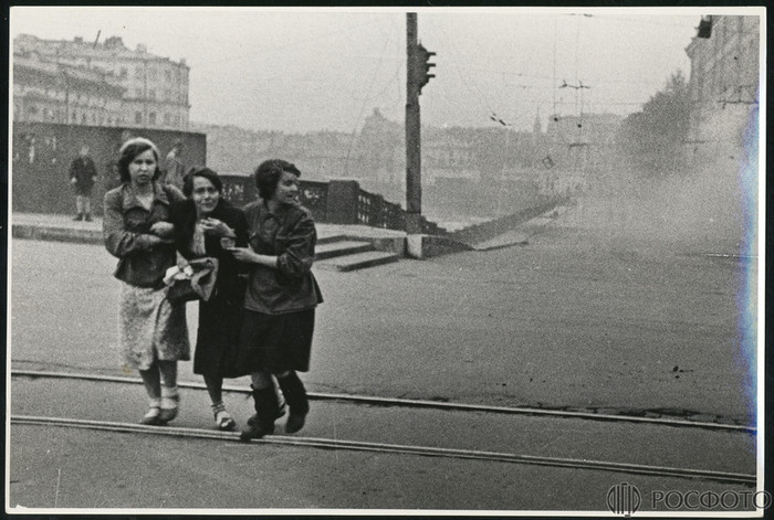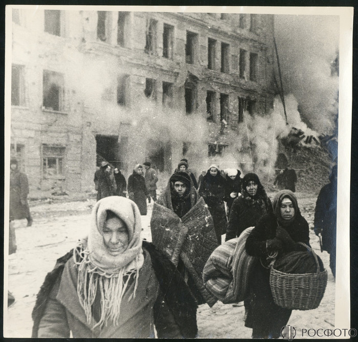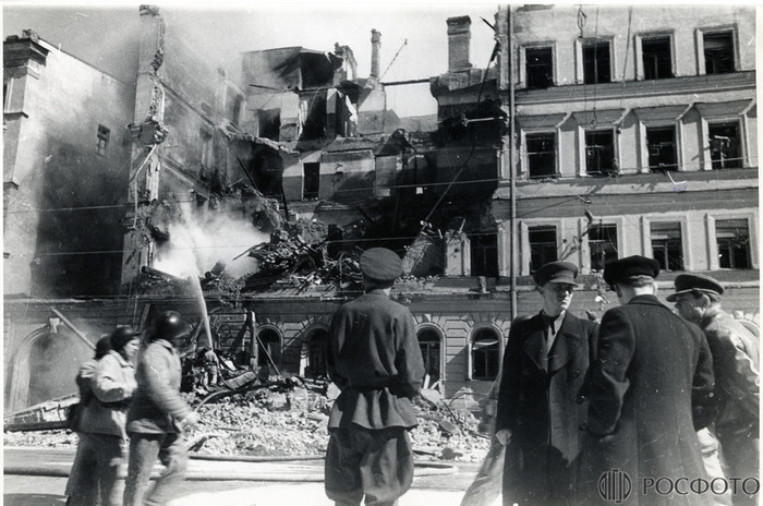 После вражеской бомбежки. Документальная фотография. 1942 г.