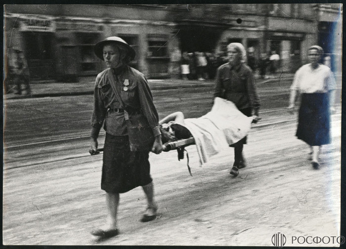 Ленинград в блокаде. Эвакуация раненых после артобстрела. 1943