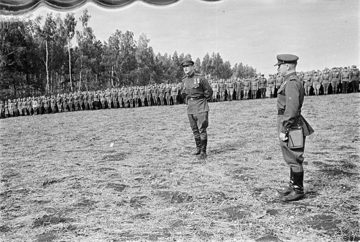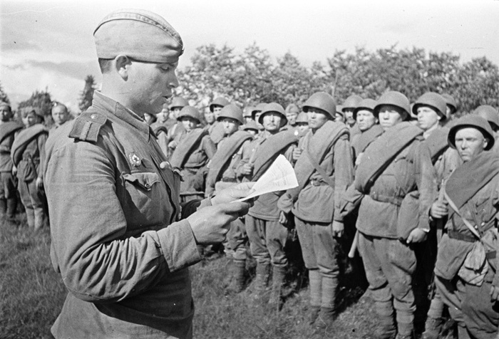 Общее построение.Из серии «1-я гвардейская мотострелковая бригада». Дата съемки: 1943 год.