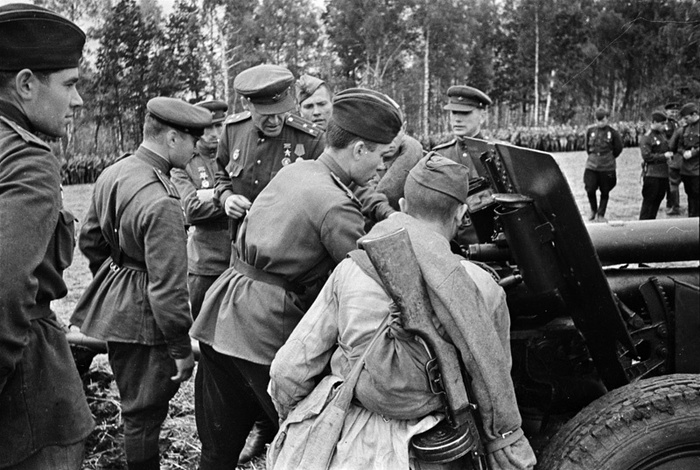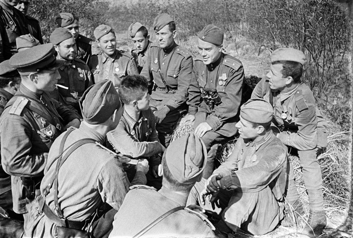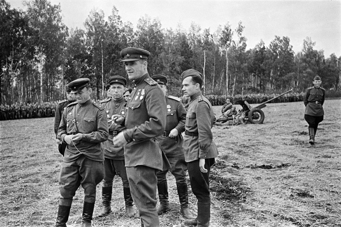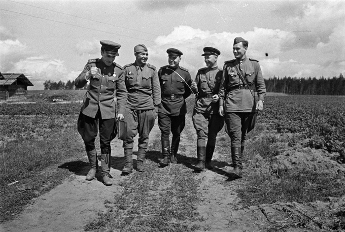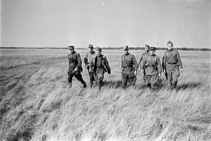 Дата съемки: 1943 год. Майор-артиллерист Курнаковский с однополчанами.