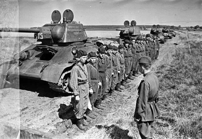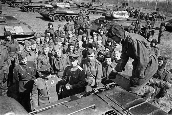 Танковые части полковника Каневского идут в бой. Строй. Дата съемки: 1944 год. 2-я танковая армия. 6-ой гвардейский танковый полк прорыва.