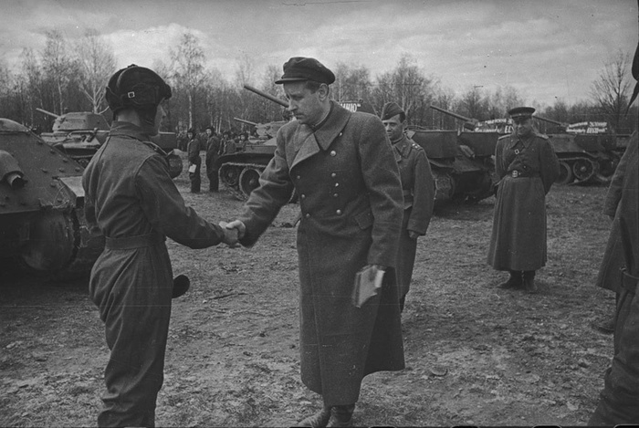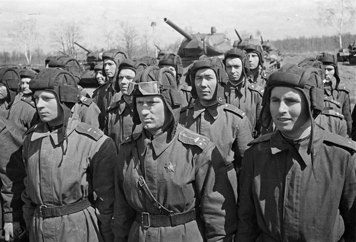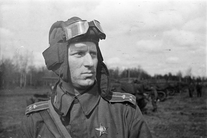 Танковые части полковника Каневского идут в бой. Танкист с орденом Красного Знамени.