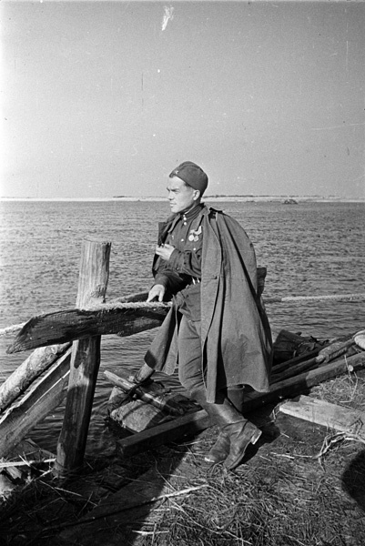 Командир полка Евдокия Бершанская в боевой машине. Дата съемки: сентябрь 1944