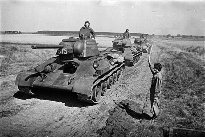 Военный регулировщик. Дата съемки: сентябрь 1944. 2-я танковая армия. 6-ой гвардейский танковый полк прорыва. Танковые части полковника Каневского идут в бой.