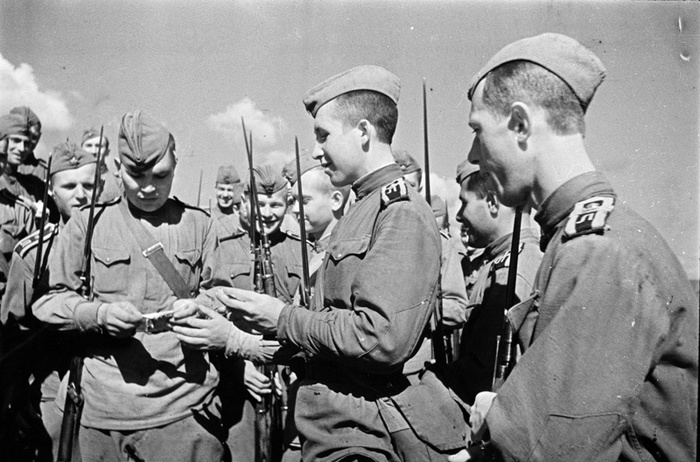 «Встреча соотечественников». Дата съемки: 1 декабря 1944 - 28 февраля 1945. Советские солдаты и освобожденные остарбайтеры.