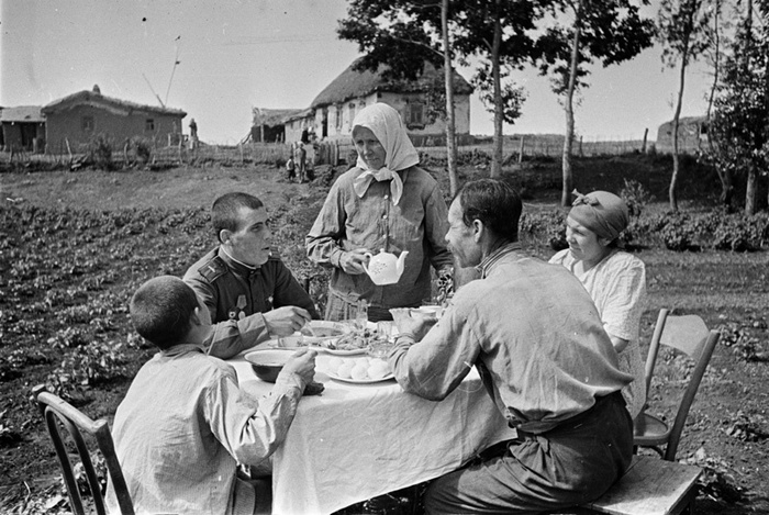 Встреча сына Николая. Отец – Даниил Евдокимович. Мать – Анна Васильевна.Дата съемки: июль - август 1943