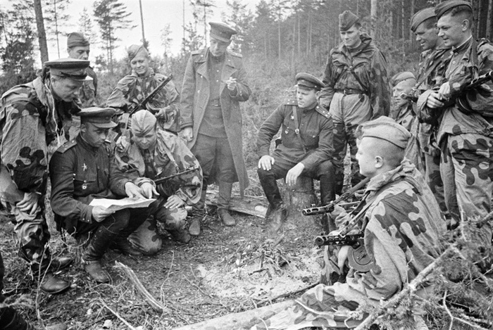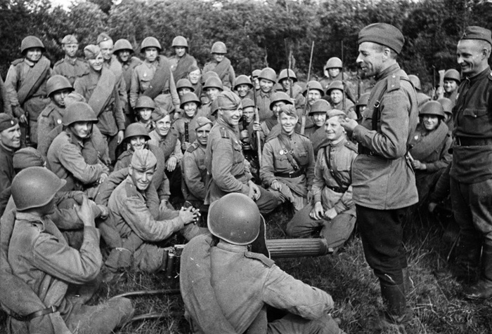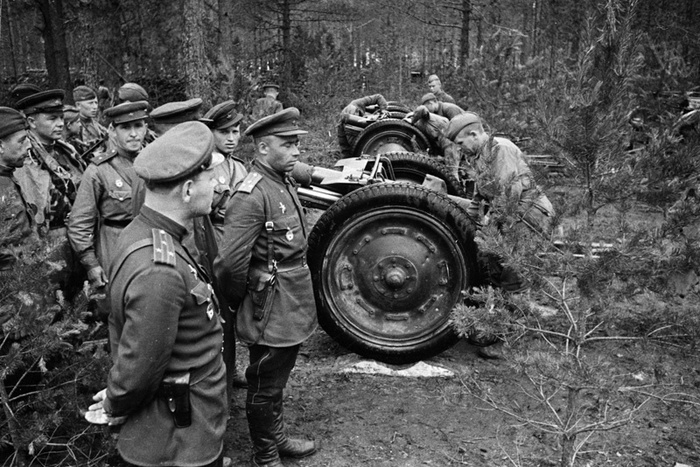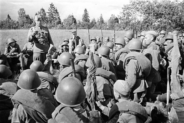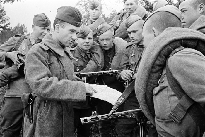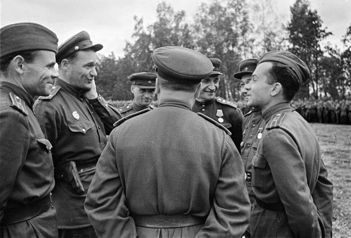 Полковник Каневский и местное эстонское руководство. Дата съемки: сентябрь 1944. 2-я танковая армия. 6-й отдельный гвардейский танковый полк прорыва.
