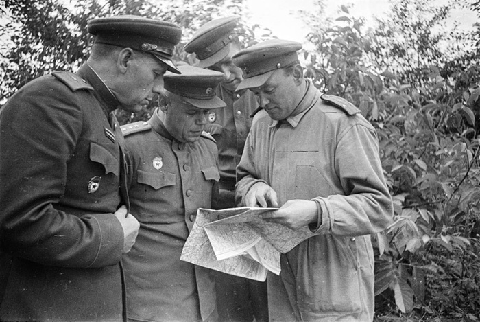 Генерал-майор Василий Новиков (в центре). Дата съемки: 1944 год