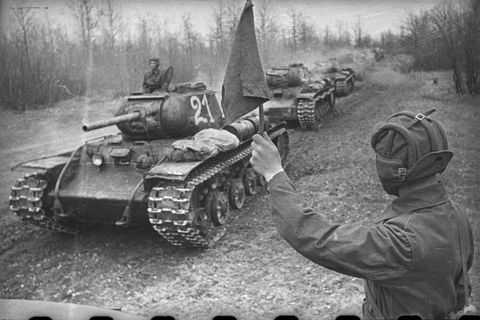 Танковые части полковника Каневского идут в бой. После проведенной боевой операции.